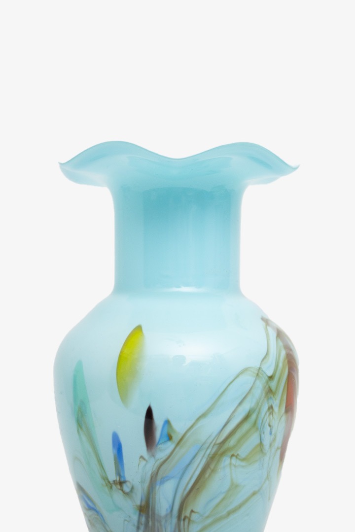 60’s Dalian Glass Co Murano vaas lichtblauw aquarel