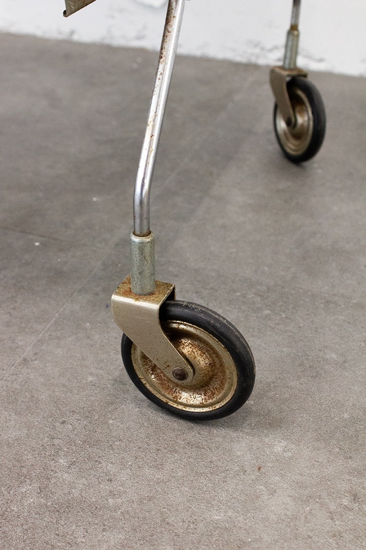 De serveerwagen/ trolley heeft wat krasjes op de bladen en het metaal heeft patina, maar dit doet niets af aan de charme van de serveerwagen.