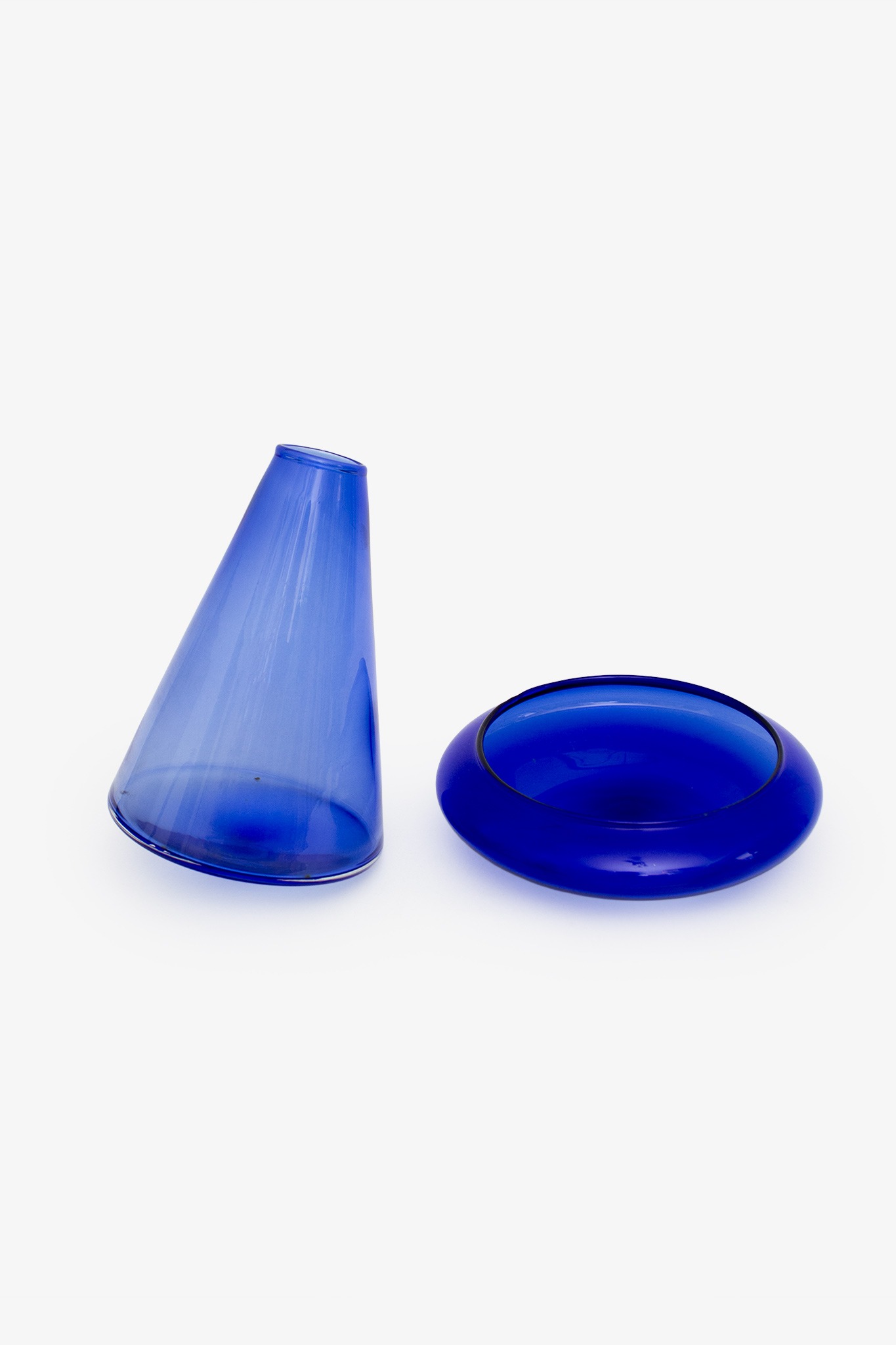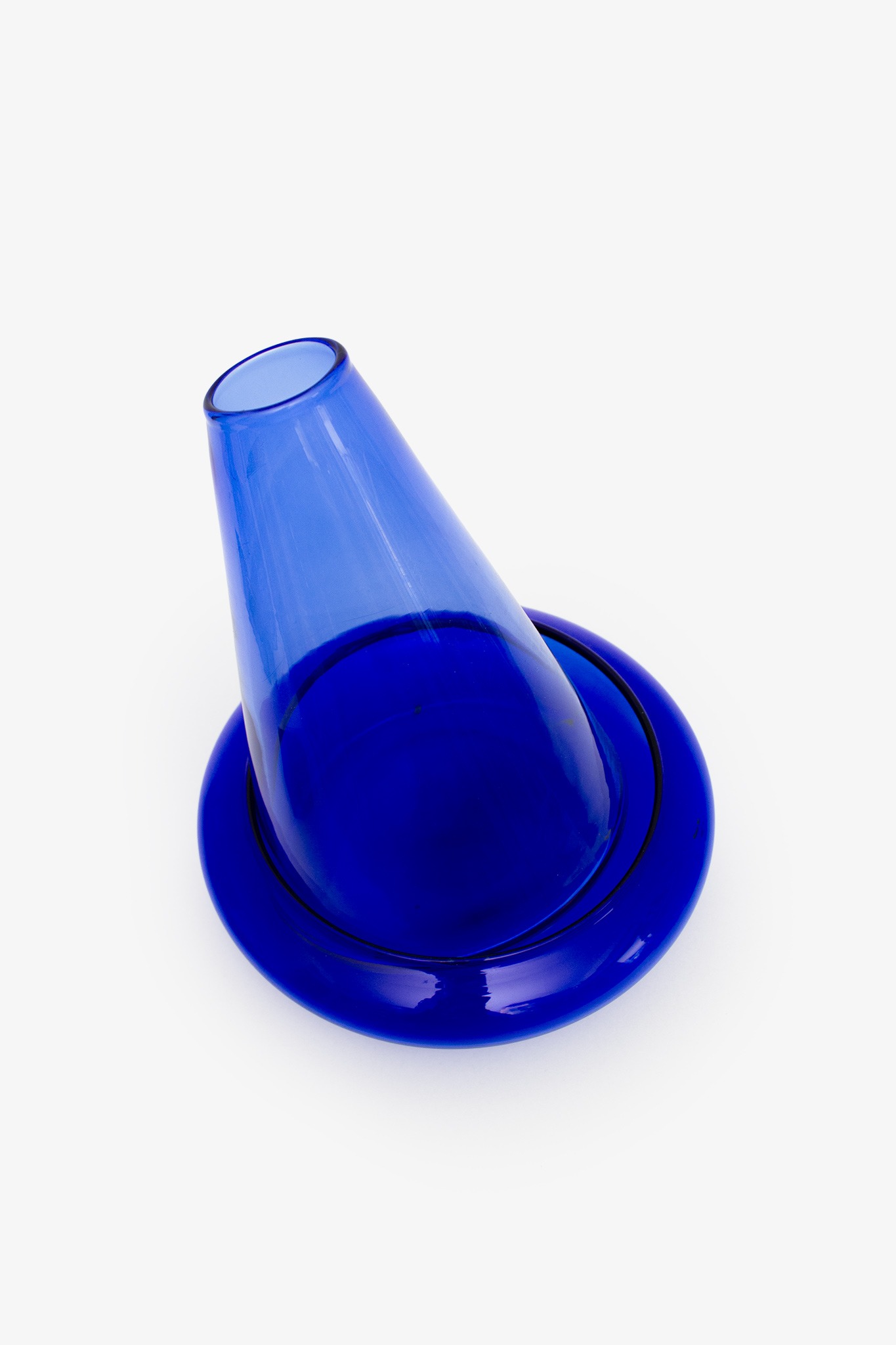 Deze Franse decanteer karaf, ook wel decanter genoemd, is een 2-delige set van zware kwaliteit blauw glas. Deze karaf, die we hebben meegenomen tijdens een trip naar Frankrijk, krijgt zijn speelse wobbly karakter doordat de karaf is ontworpen in een kegelvorm. Door de kegelvorm kan de karaf niet op zichzelf staan en is deze geplaatst in een blauwe glazen schaal. Hierdoor kan de karaf 180 graden draaien en vormt hiermee een centerpiece op een feestelijk gedekte tafel. Daarnaast kun je de wijn of het water koel houden door bijvoorbeeld ijs in de schaal te leggen.