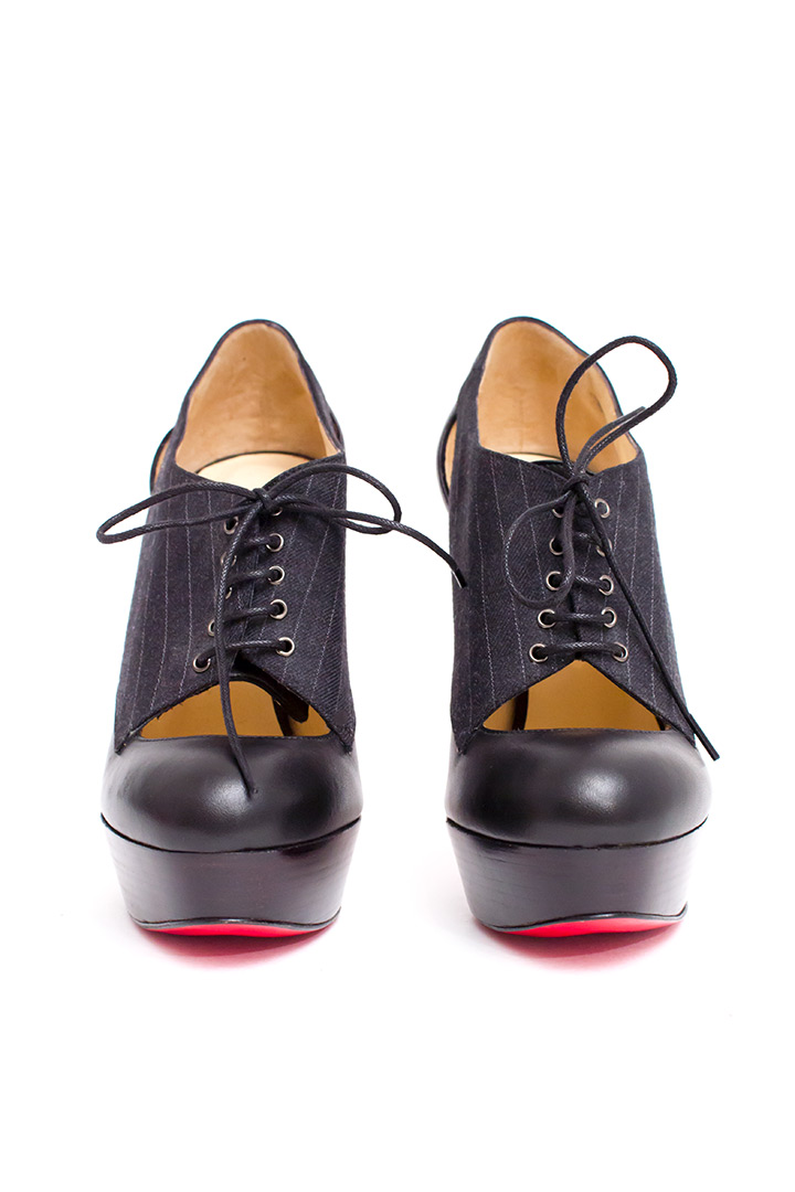 Extreem hoog en extreem elegant: een stijlvolle pump en veterlaars in één. Deze Christian Louboutin pumps – met de bekende rode zool – zijn gemaakt van leer en voorzien van een flink plateau. De upper bestaat uit een stoffen giletje met een gestreept patroon en zwarte veters. Een tijdloze en vrouwelijke klassieker. Deze pumps zijn wat ons betreft extra bijzonder door het mooie lijnenspel tussen open en dicht.