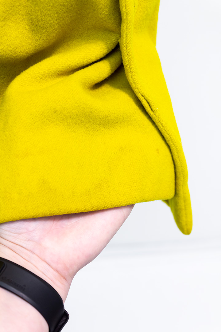 We vonden deze Gaultier jas tijdens een tripje naar Frankrijk. De vorige eigenaar hield een huisverkoop en deed het colbert weg. Het kledingstuk is gedragen en heeft enkele gebruikssporen. Er zijn wat lichte vlekken onderaan op de voorkant. Ook is er een licht plekje zichtbaar op de revers en op de mouw. De neon gele kleur leidt de aandacht hier met gemak van af!