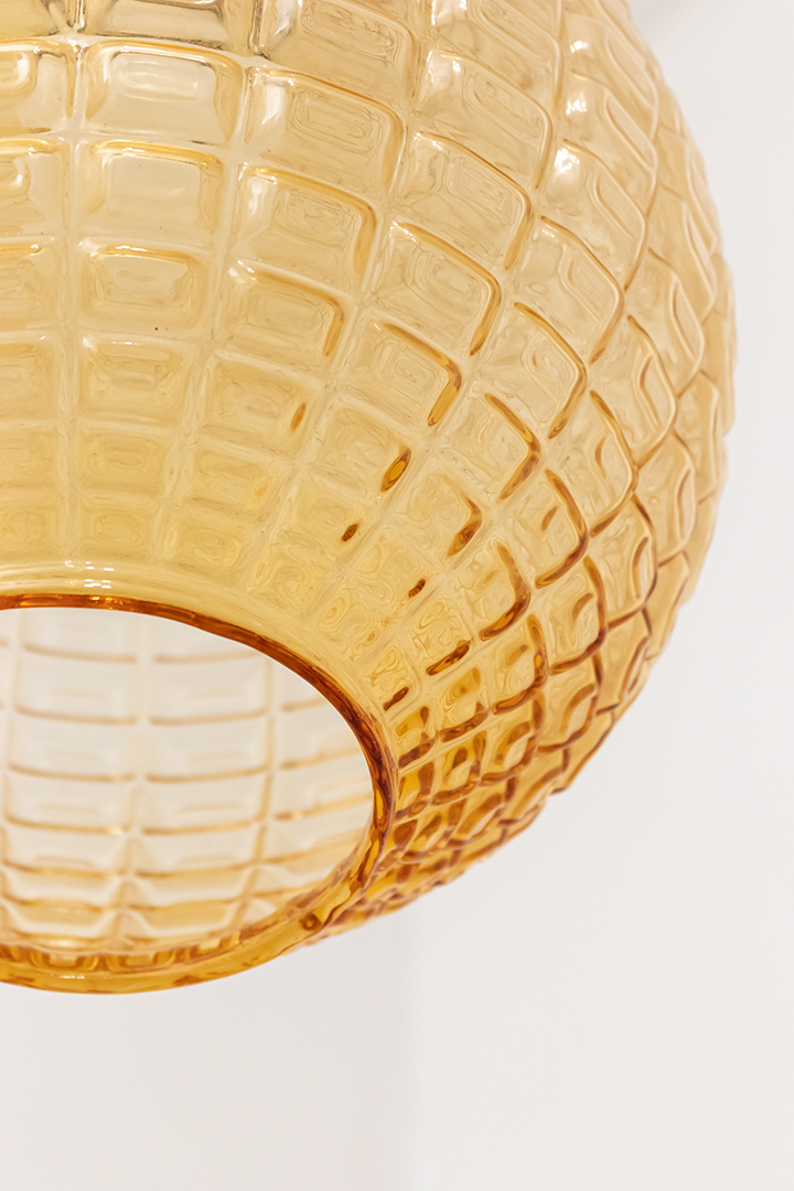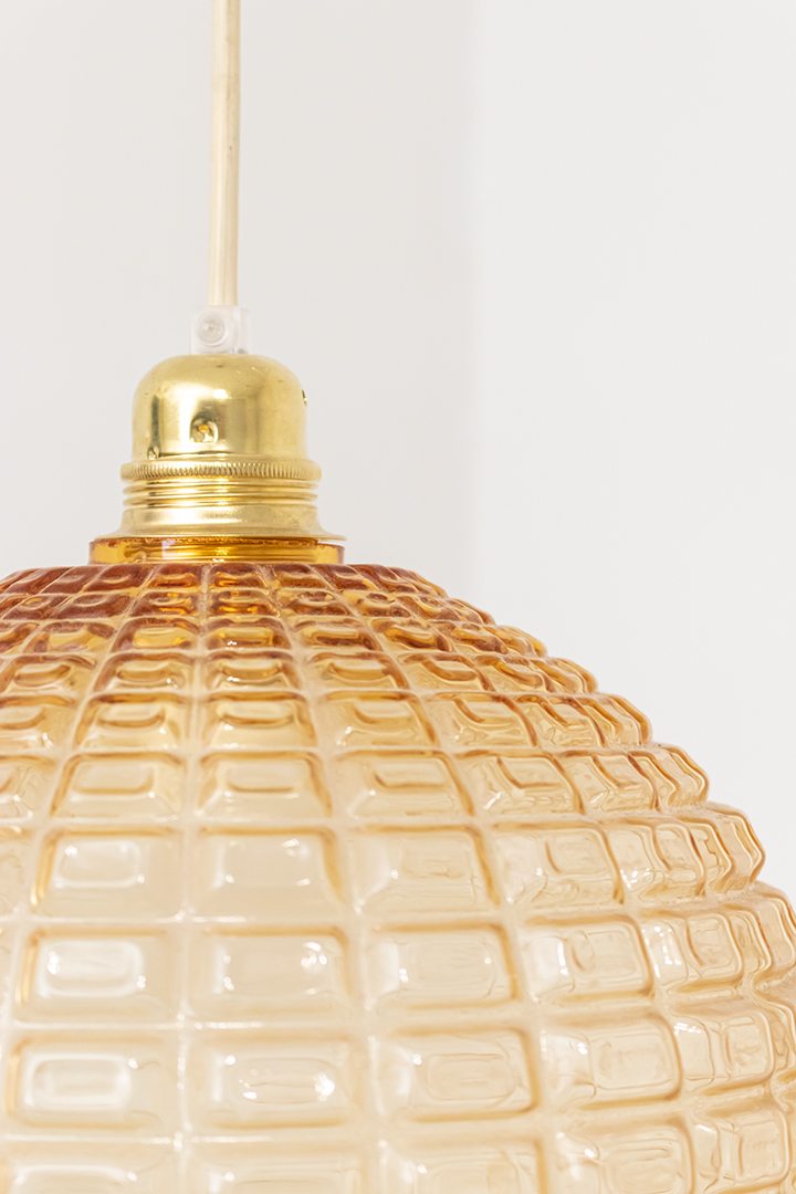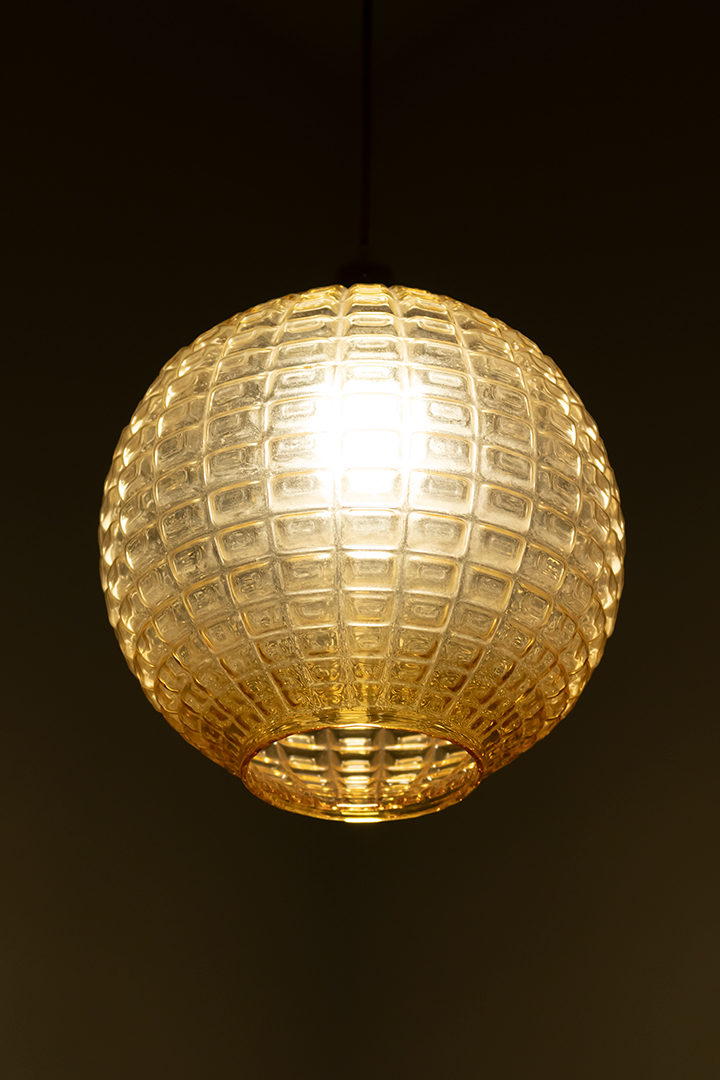 Deze mooie hanglamp komt uit de jaren 70 en heeft de vorm van een ronde globe. De glazen lampenkap is amberkleurig en voorzien van een geblokt reliëf welke het licht prachtig door de ruime verspreidt. Het leuke aan dit seventies ontwerp is dat je de lamp gemakkelijk kunt combineren met verschillende interieur-stijlen. Hang de globe in een bohemien huis om de natuurtinten te versterken of geef de plafondlamp een plekje als eye-catcher in een minimalistisch interieur.