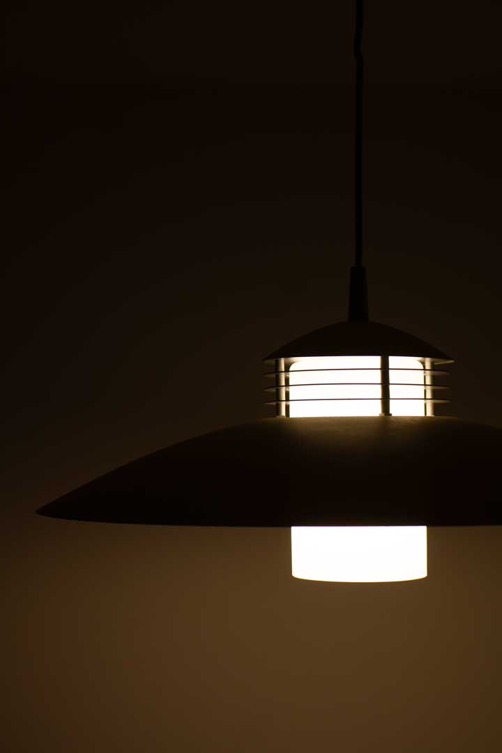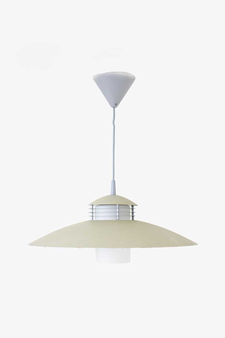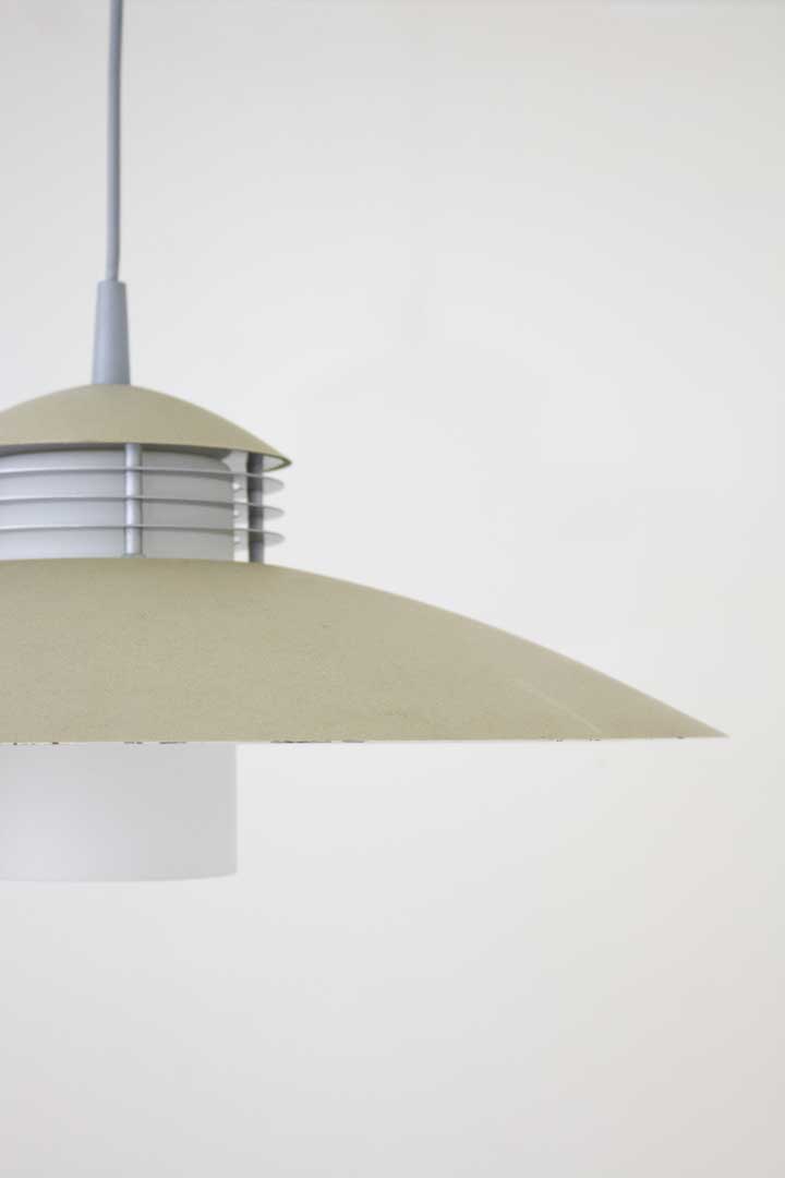 Bijzondere jaren 00 Massive hanglamp met een leuke combinatie van strak design en lichtverdeling. De lamp heeft een ingetogen kleur en een speelse gelaagde opbouw, wat zorgt voor een subtiele retro look. Het ontwerp doet ons vooral denken aan de Scandinavische stijl.