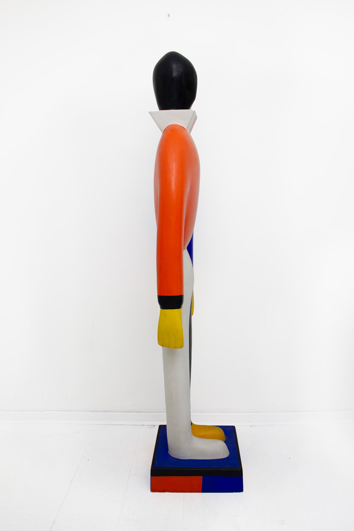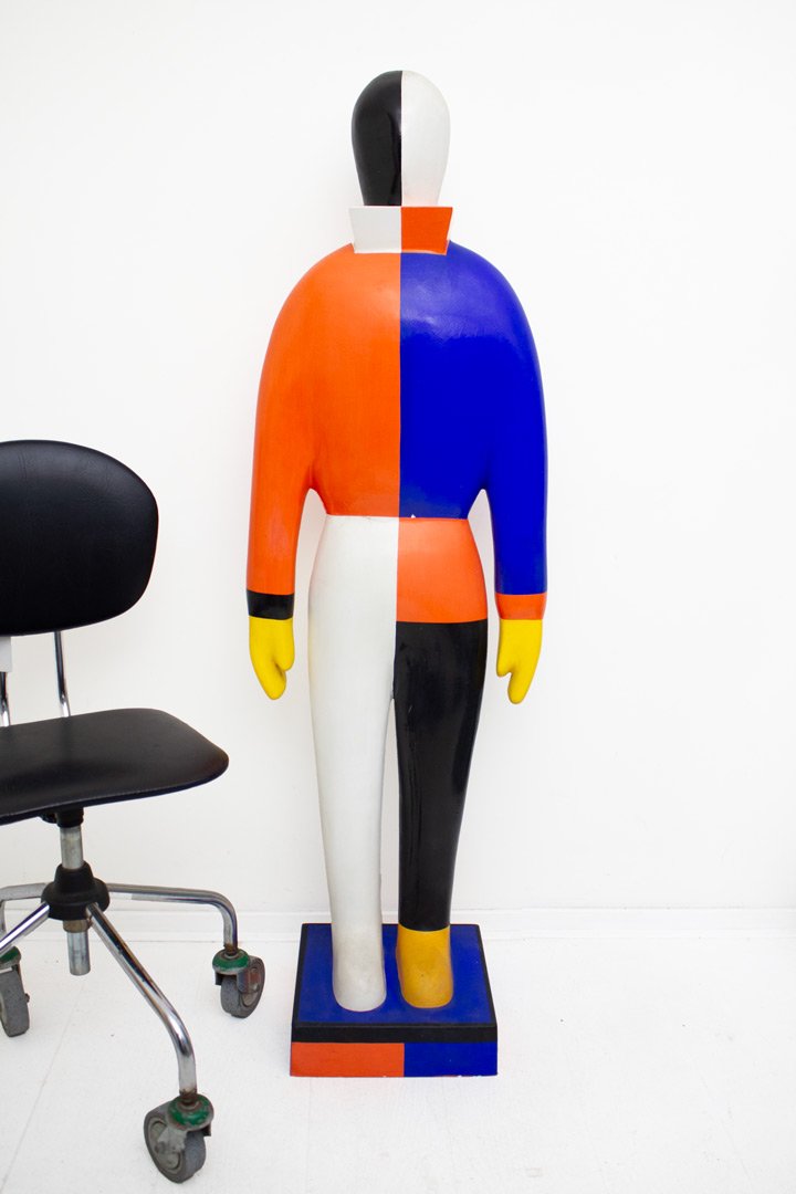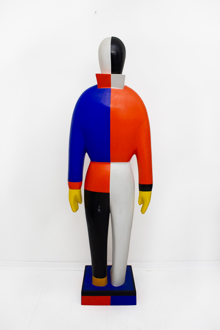 Dit standbeeld vertegenwoordigt een van de hoofdrolspelers in Kazimir Malevich’s beroemde suprematistische schilderij uit 1931; SPORTSMEN.