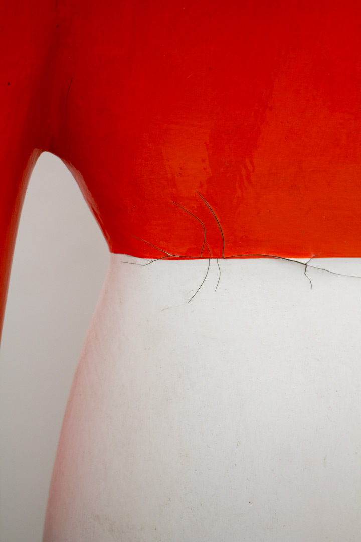 Het beeld heeft op een aantal plekken wat verfverlies/verkleuringen, en bij de taille en binnenkant handen, zit wat craquelé. Duidelijk op de foto’s zichtbaar, niet storend in het geheel.