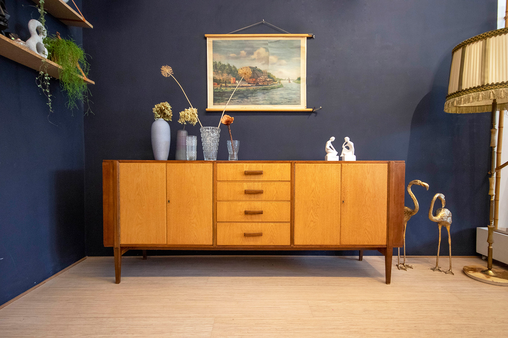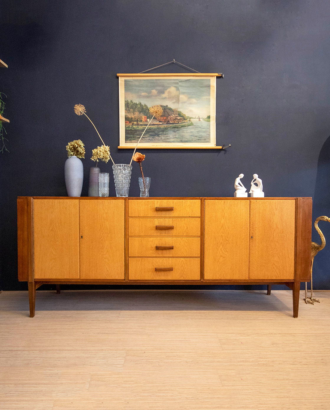 Mahonie & Eikenfineer vintage dressoir met 4 lades en deurtjes