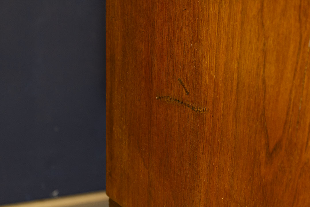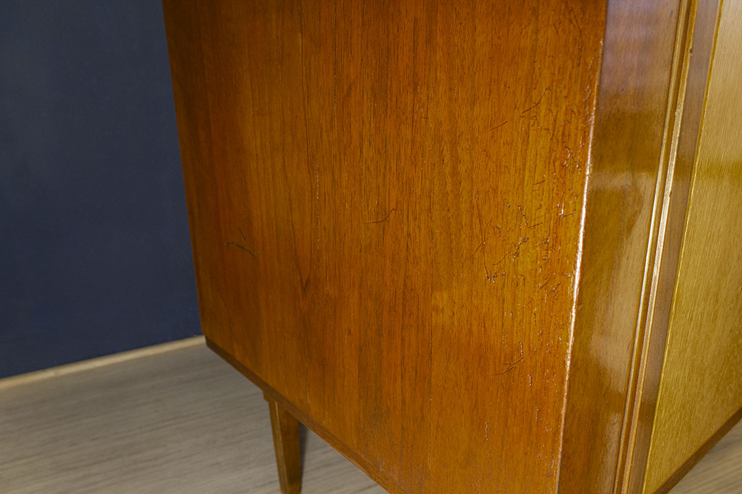 Het dressoir verkeert in goede staat maar heeft enkele gebruikssporen. Aan de linker zijde zijn enkele krassen in het fineer waaronder 1 wat grotere kras.