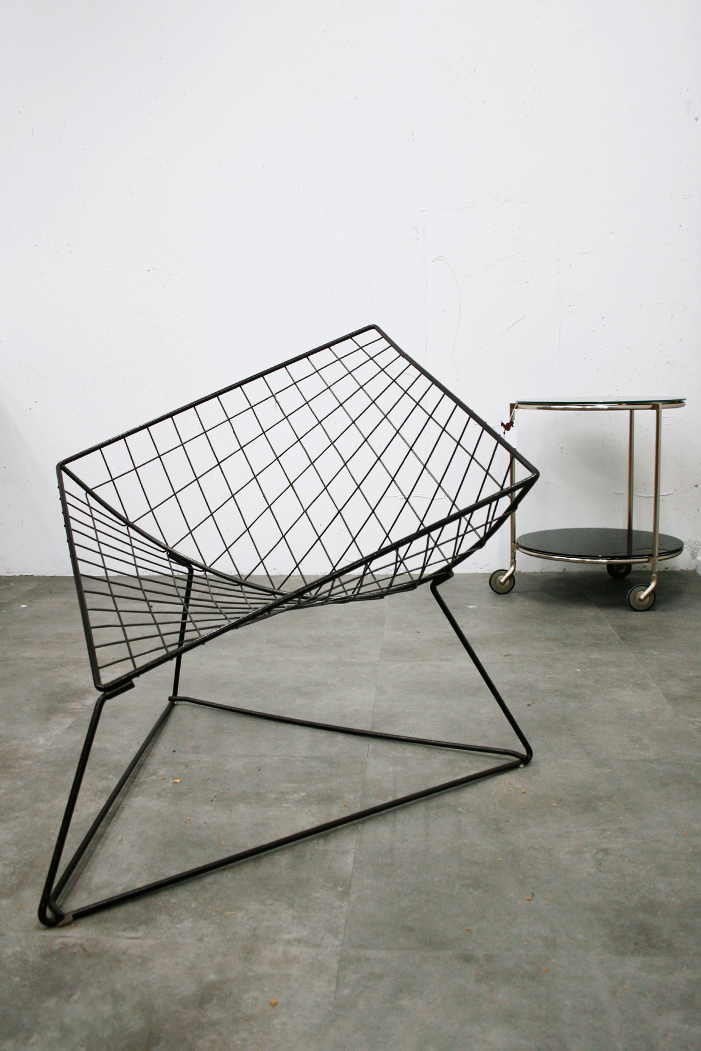 Deze mooie minimalistische draadstoel draagt de naam Oti en is in de jaren 80 ontworpen door Niels Gammelgaard voor IKEA. Een tijdloos pareltje van het Zweedse concern! De stoel heeft een relaxte zit en is op zijn comfortabelst met een zacht schapenkleedje of fijn kussen. De constructie van antraciet draadstaal geeft deze fauteuil een open en ruimtelijke uitstraling. Een perfecte Scandinavische klassieker voor in je interieur!