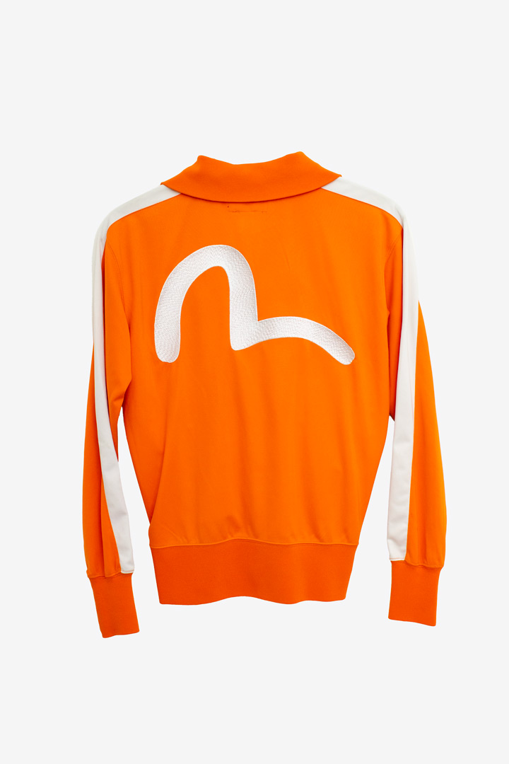 Feloranje en sportief, dé kenmerken van dit trainingsjasje van het hippe street style modemerk Evisu! Het modemerk Evisu werd opgericht in 1991 door de Japanse Hedehiko Yamane en ondervond de laatste jaren een echte opleving. Dit trainingsjasje is gezien het logo gemaakt in de jaren 2000.