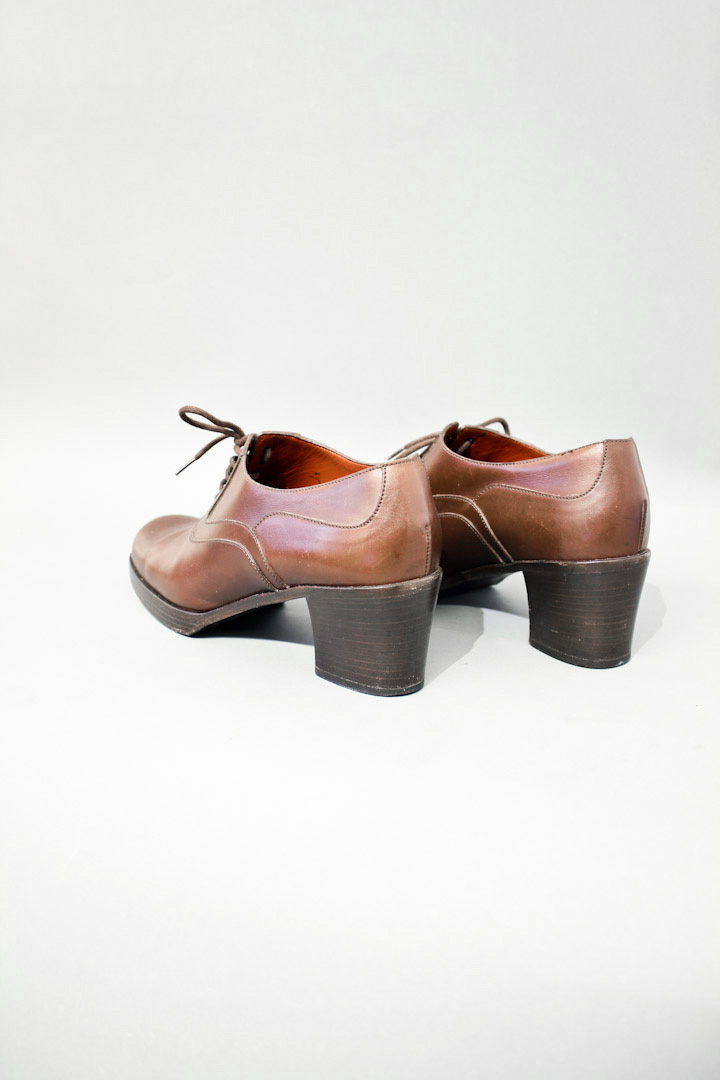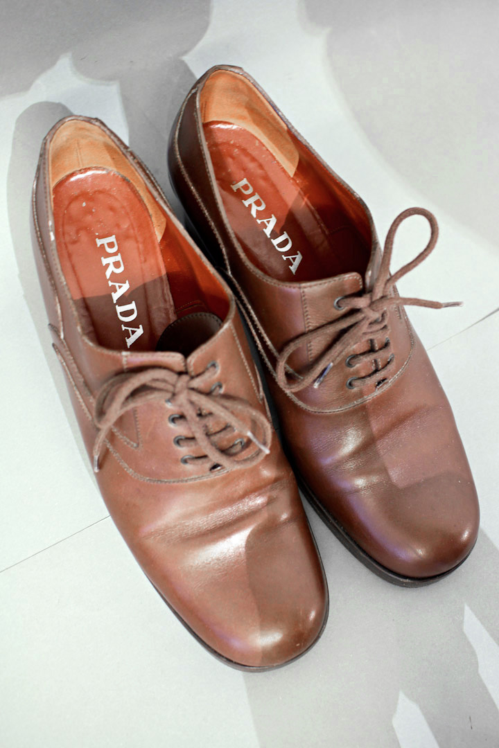 Prachtige sixties Prada oxford lace ups / veterschoenen in maat 38,5. In bruin leer en in bijzonder goede staat. Dit paar sixties Prada veterschoenen komt daadwerkelijk uit de jaren 60. De oorspronkelijke eigenaresse was de buurvrouw van de huidige eigenaresse, welke de schoenen van de buurvrouw altijd bewonderde. Tot op een dag de buurvrouw langskwam met de schoenen en zei dat ze ze mocht hebben omdat ze simpelweg niet gedragen werden.