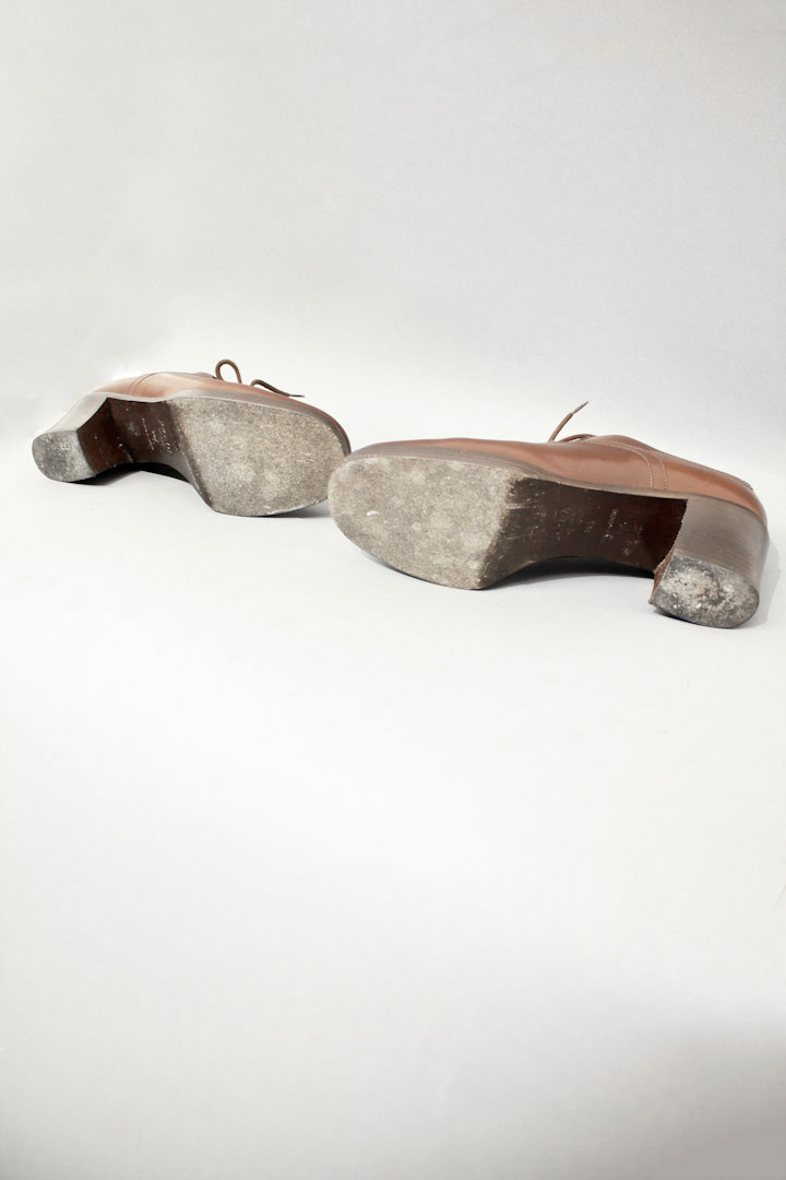 Ondanks wat gebruikssporen op de onderkant van de zolen zijn de schoenen bijna in onberispelijke staat. Helemaal voor hun 60 jarige leeftijd. Het leer en de zolen zijn vrijwel niet aangetast en ook nog soepel.