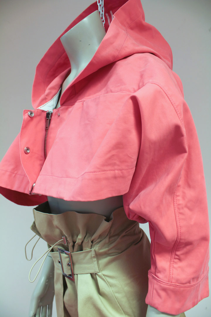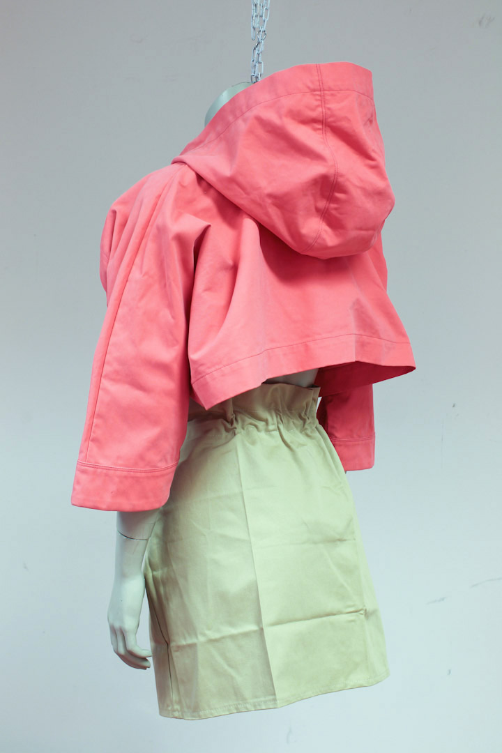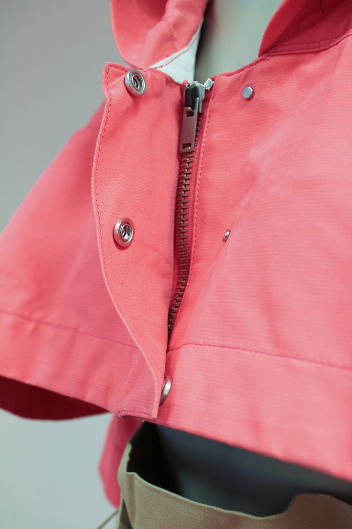 Kort roze Maison Martin Margiela jasje met een grote capuchon. Dit cropped Maison Martin Margiela jasje is van de MM6 lijn en heeft een mooie ‘boxy’ pasvorm. Het heeft een rits en drukknopen en twee steekzakken op de borst. De mouw is 3/4 lengte. De naden aan de binnenzijde zijn mooi plat afgewerkt. Het is een maat 40, maar door de wijdvallende vorm van het jasje zal het ook passen als je een kleinere of ietwat grotere maat hebt. Gemaakt in Italië speciaal voor de Amerikaanse markt.