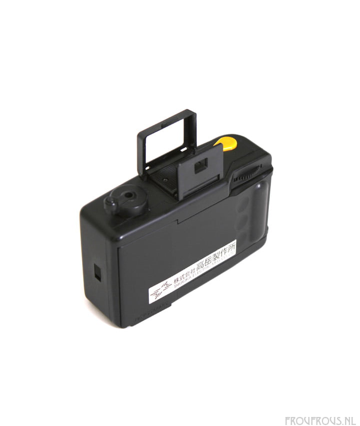 Deze Japanse camera is gemaakt van kunststof en heeft aan de bovenkant een pop-up sport viewfinder, de ontspanner en een terugspoel-mechanisme voor de film. Aan de achterkant vind je het opwindmechamisme en onderaan een teller voor het aantal foto’s die geschoten zijn. De camera heeft een vaste 26mm lens met een diaframa van F11. De sluitertijd heeft een vaste waarde van 1/100. Werkt zonder batterij.