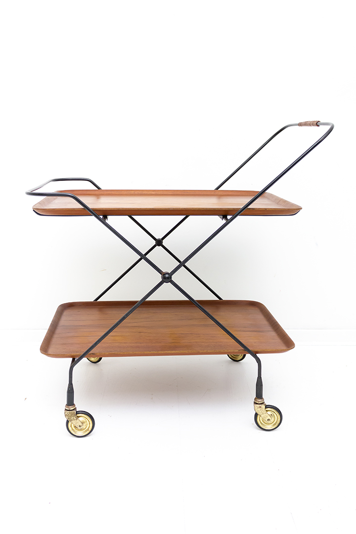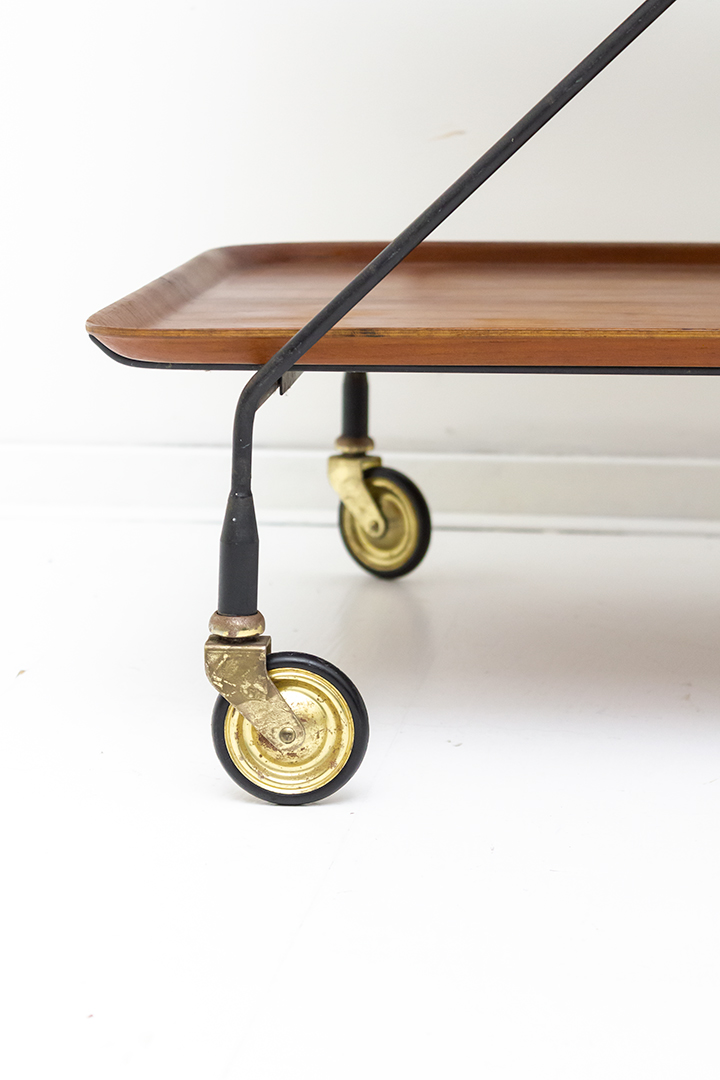 In prima vintage staat. Beiden dienbladen van deze serveerwagen hebben wat vochtvlekken / verkleuring.
