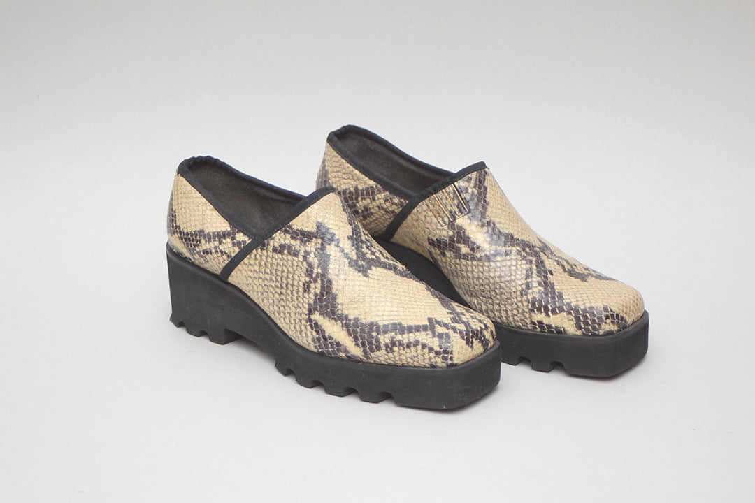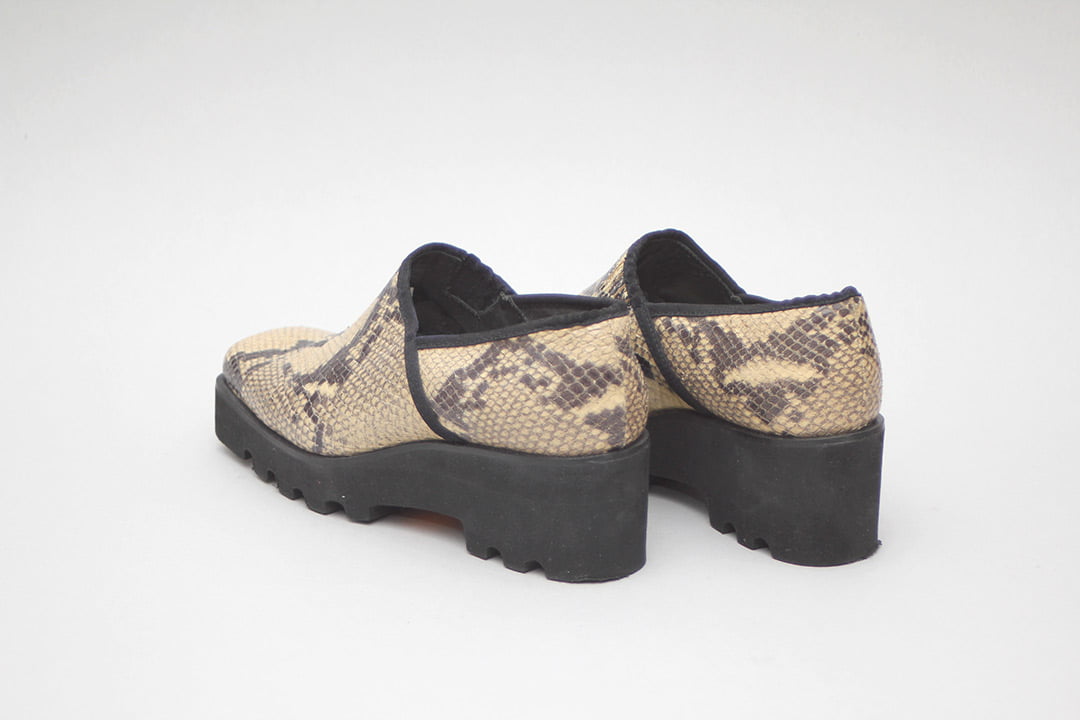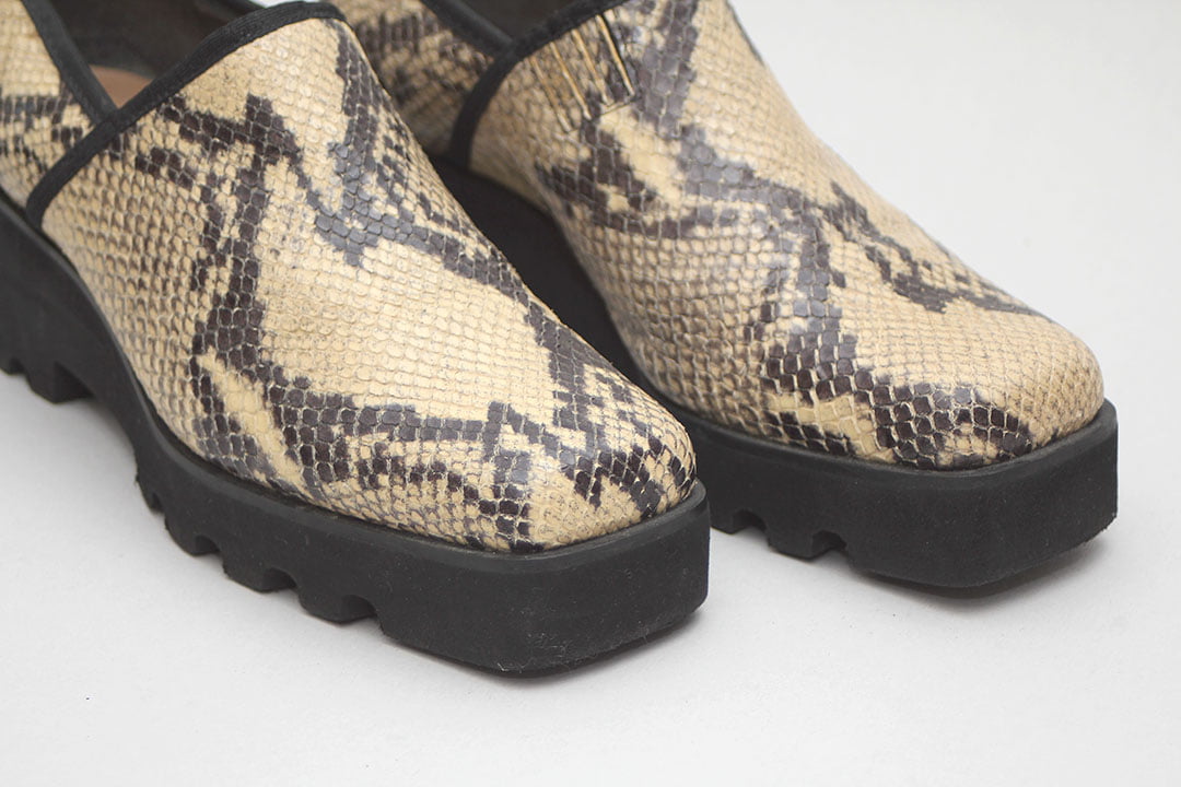 Materiaal: Slangenleer en kunststof zool