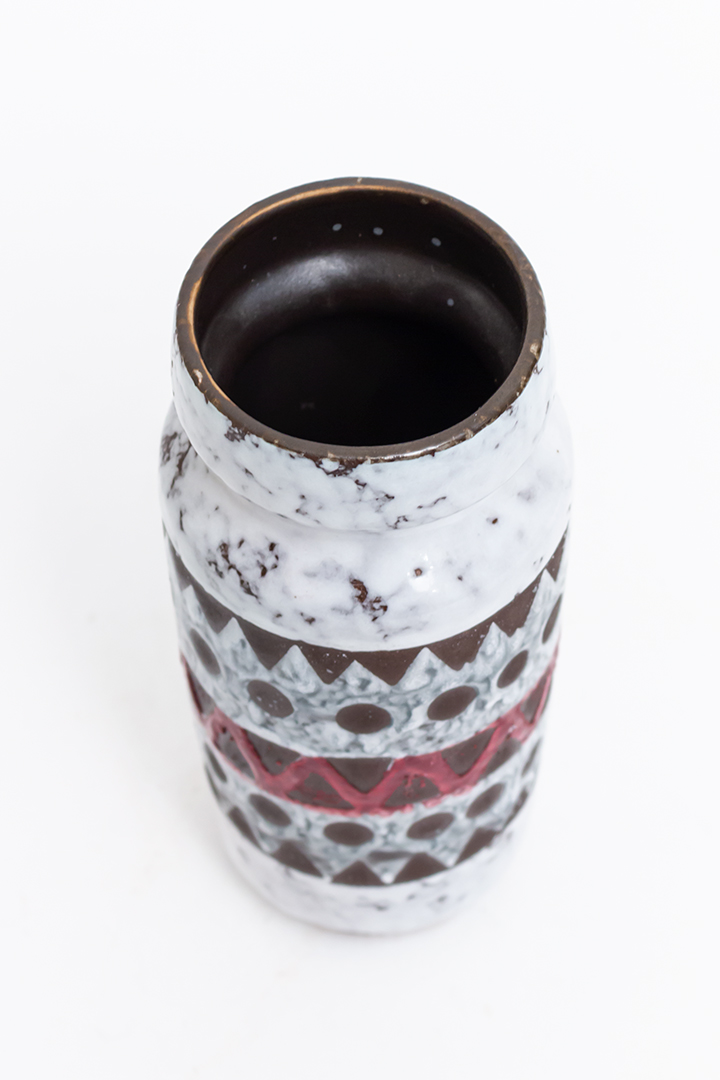 Strehla vaas vintage met wit fat lava glazuur en zigzag patroon