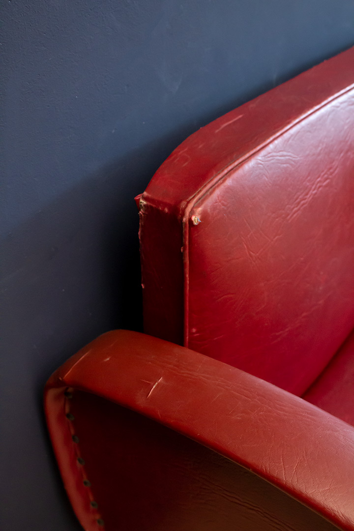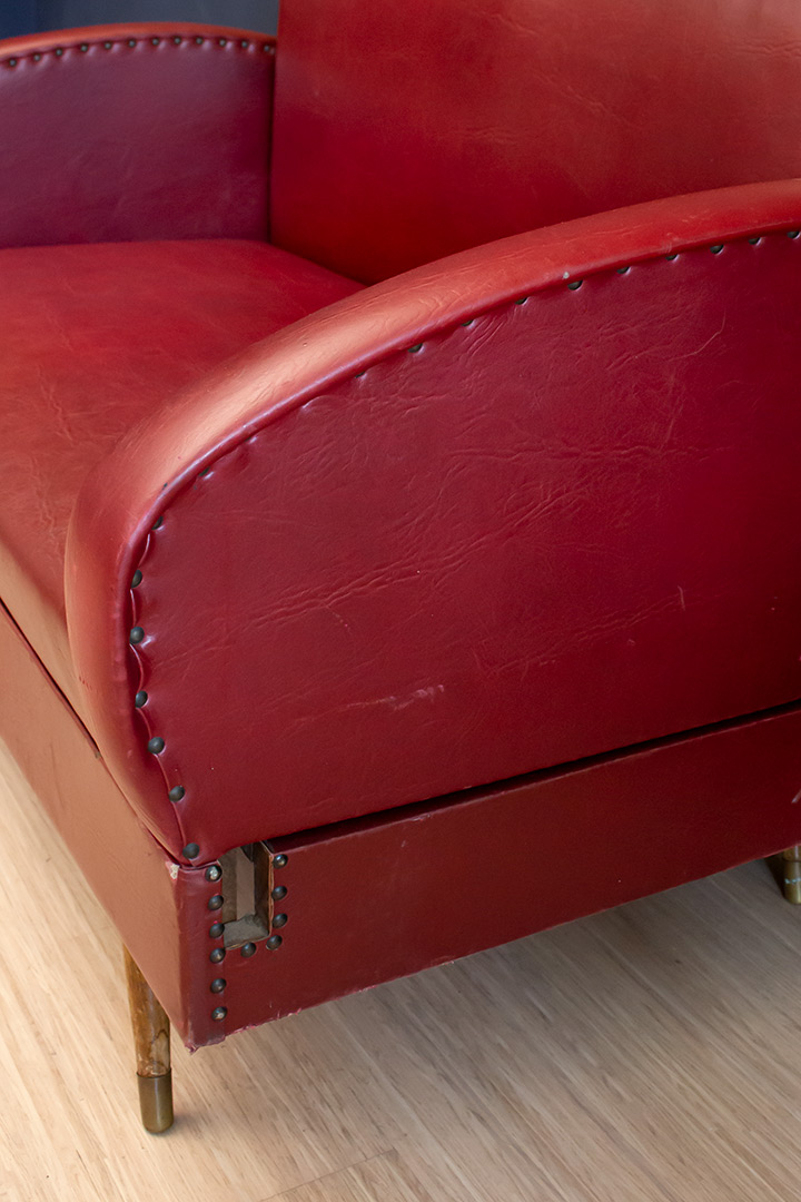 Vintage bordeauxrood bankje van skai-leer met uitneembare leuningen