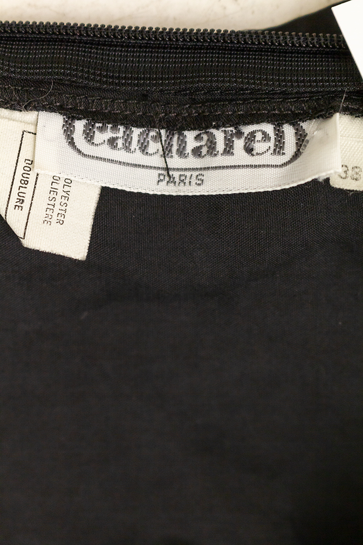Vintage Cacharel jurk zwart met lange mouwen en rushes