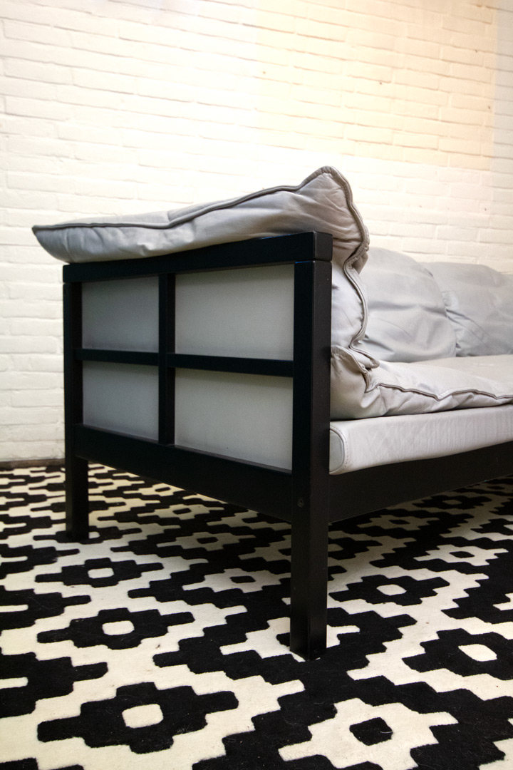De bank zou geweldig staan in een minimalistisch interieur met een Aziatisch tintje of een interieur met een Mondriaan- of De Stijl-tint.