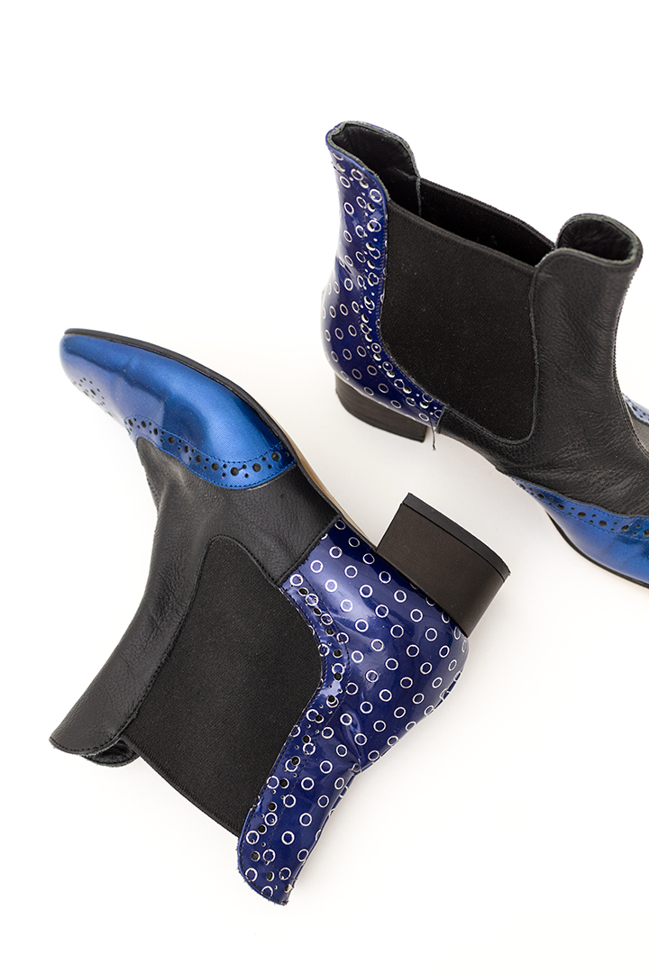 Vintage enkellaarzen zwart/blauw geperforeerd leer Jodiel David Moresco – maat 36