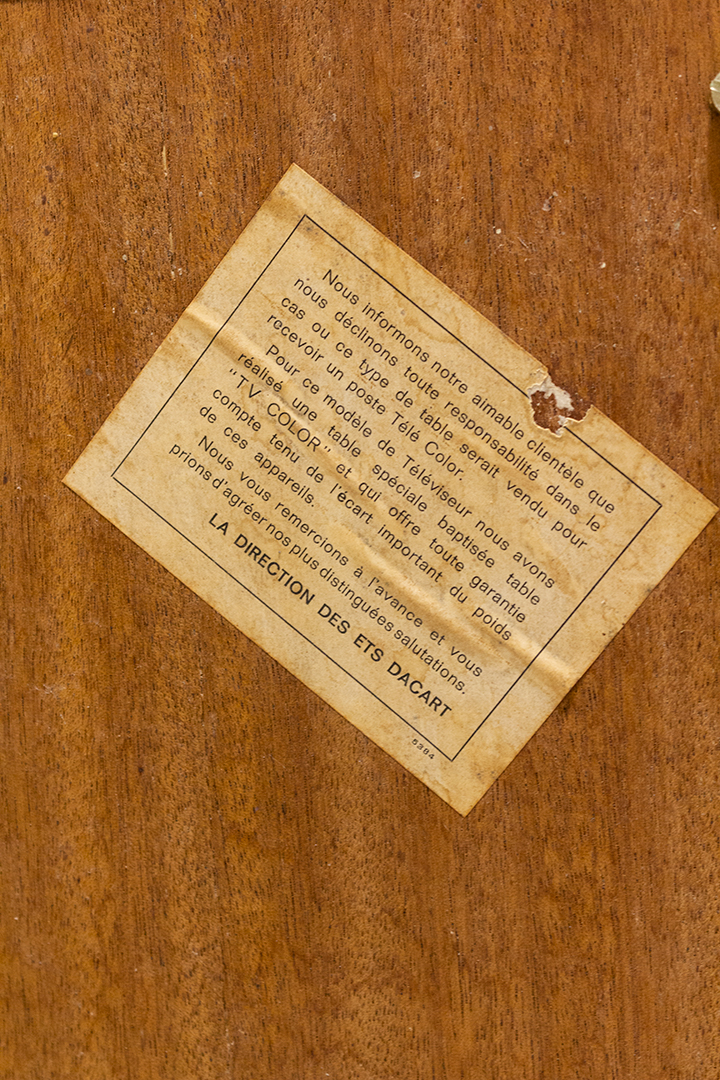 Rondom de tafelbladen zit een metalen rand. Aan één zijde sluit deze niet helemaal goed aan, een klein productiefoutje. De vintage trolley verkeert verder in goede staat. Zelfs de wieltjes rollen nog helemaal soepel.