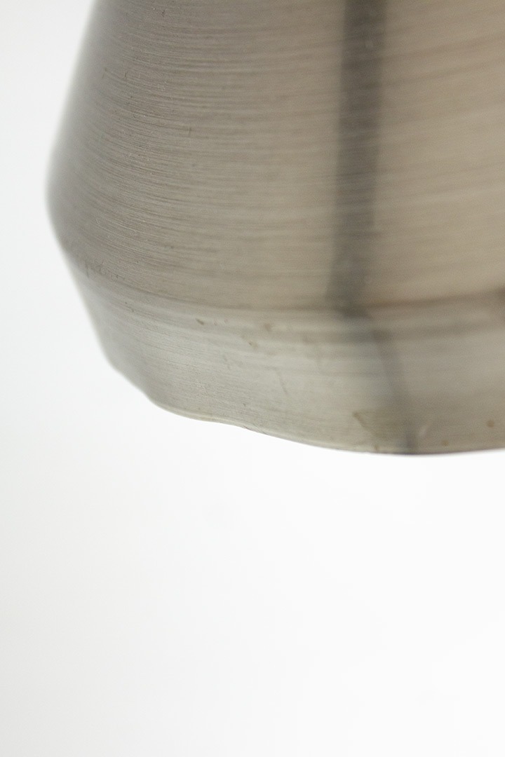 Gemaakt door Hala uit Zeist, een Nederlandse fabrikant die sinds de jaren 30 bekend stond om hun functionele en betaalbare verlichting. Dit model is waarschijnlijk uit de jaren 80, en dat zie je terug in de combinatie van geborsteld metaal en kunststof onderdelen.