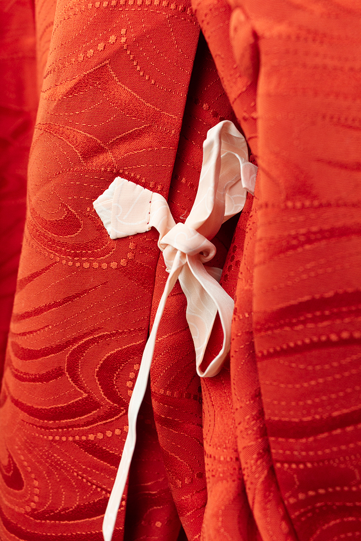 Korte kimono’s heten in Japan officieel een haori en worden over de echte kimono gedragen. Ze vallen wijd en sluiten gewoonlijk met een gevlochten koord. De voorpanelen overlappen hierbij niet, wat bij een kimono wel het geval is. Dit vintage exemplaar houdt zich dus niet helemaal aan de haori-regels, maar is gelukkig ook erg mooi!
