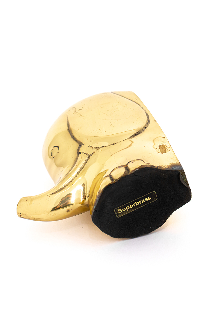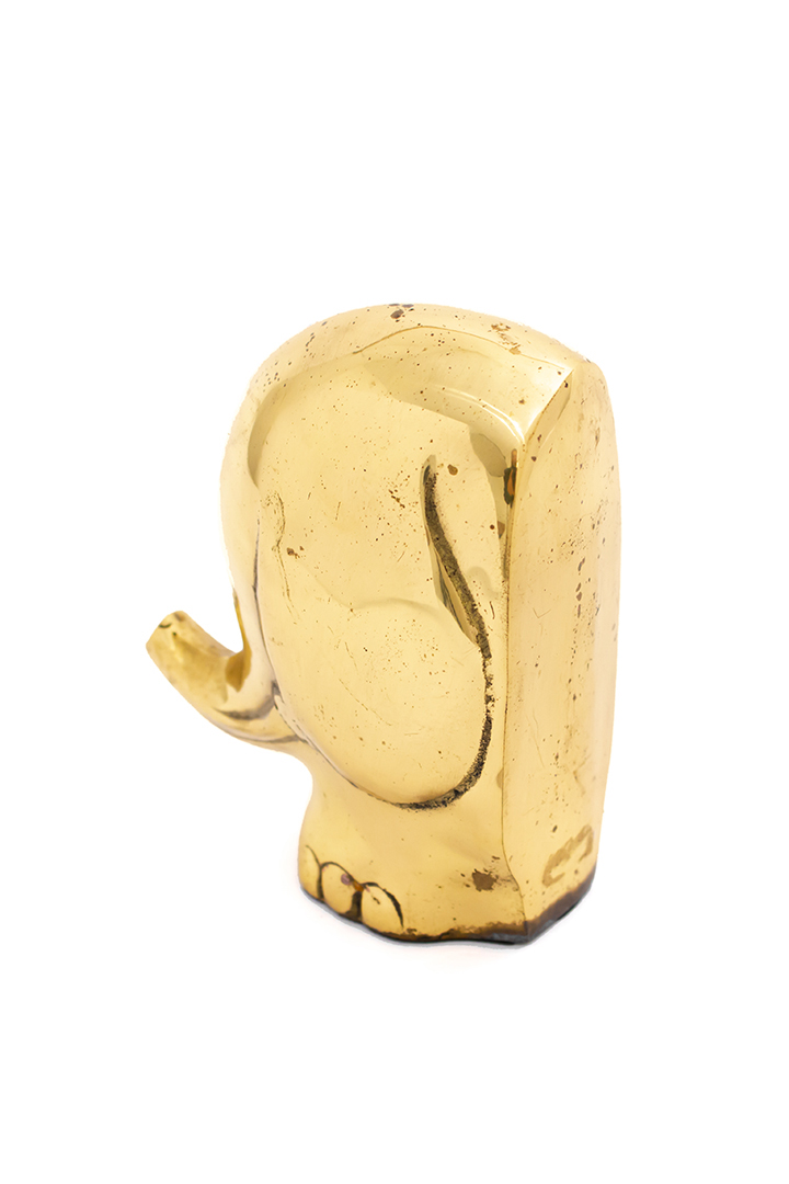 Geabstraheerd vintage olifantenbeeldje, gemaakt van messing en bedoeld als boekensteun. Het beeld is lekker zwaar en heeft een rechte achterkant die je gemakkelijk tegen een rijtje boeken aanschuift. Wist je dat de olifant in veel culturen een symbool voor wijsheid is? Een ideaal ‘huisdiertje’ voor tussen jouw leesvoer dus!