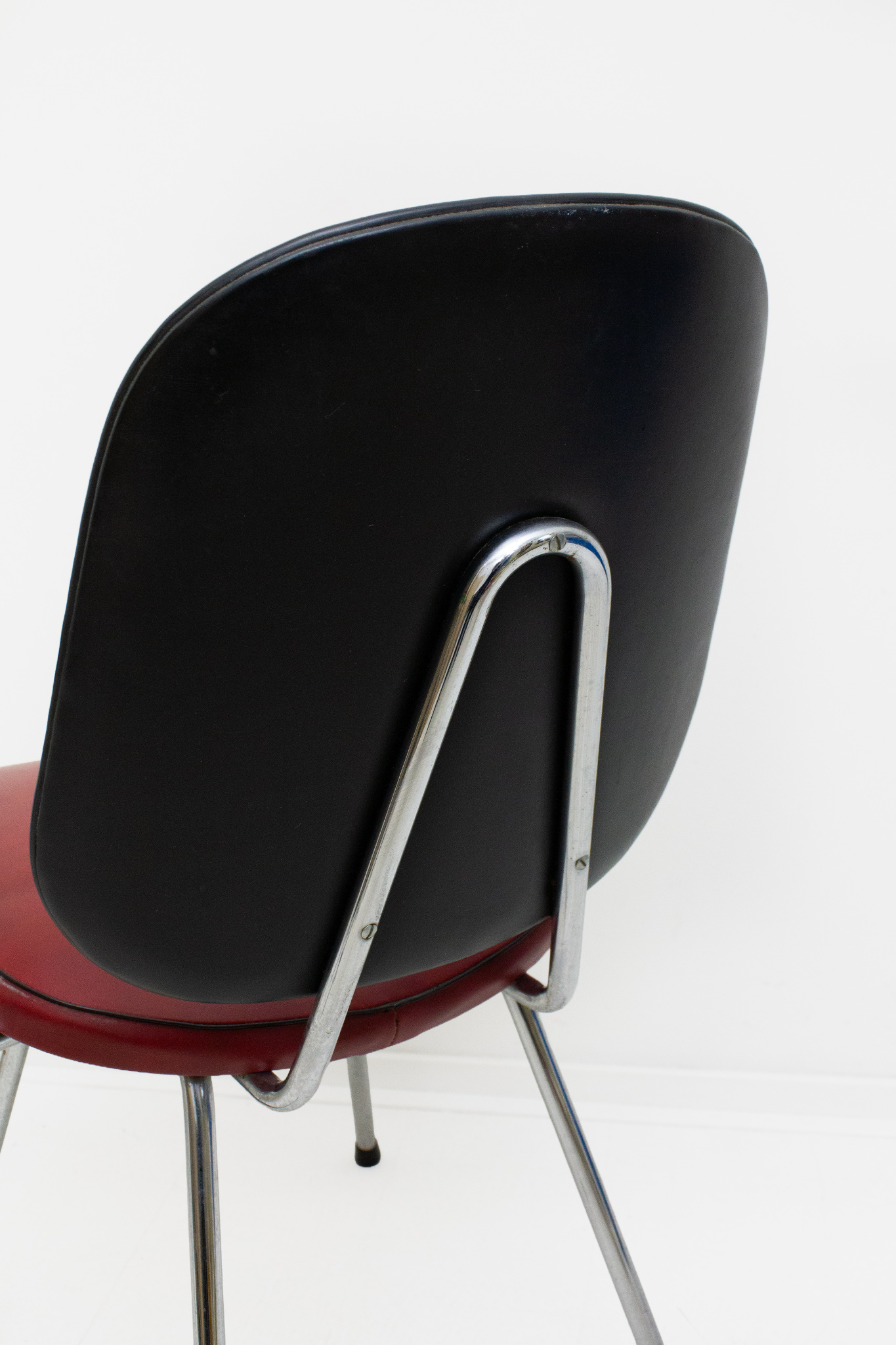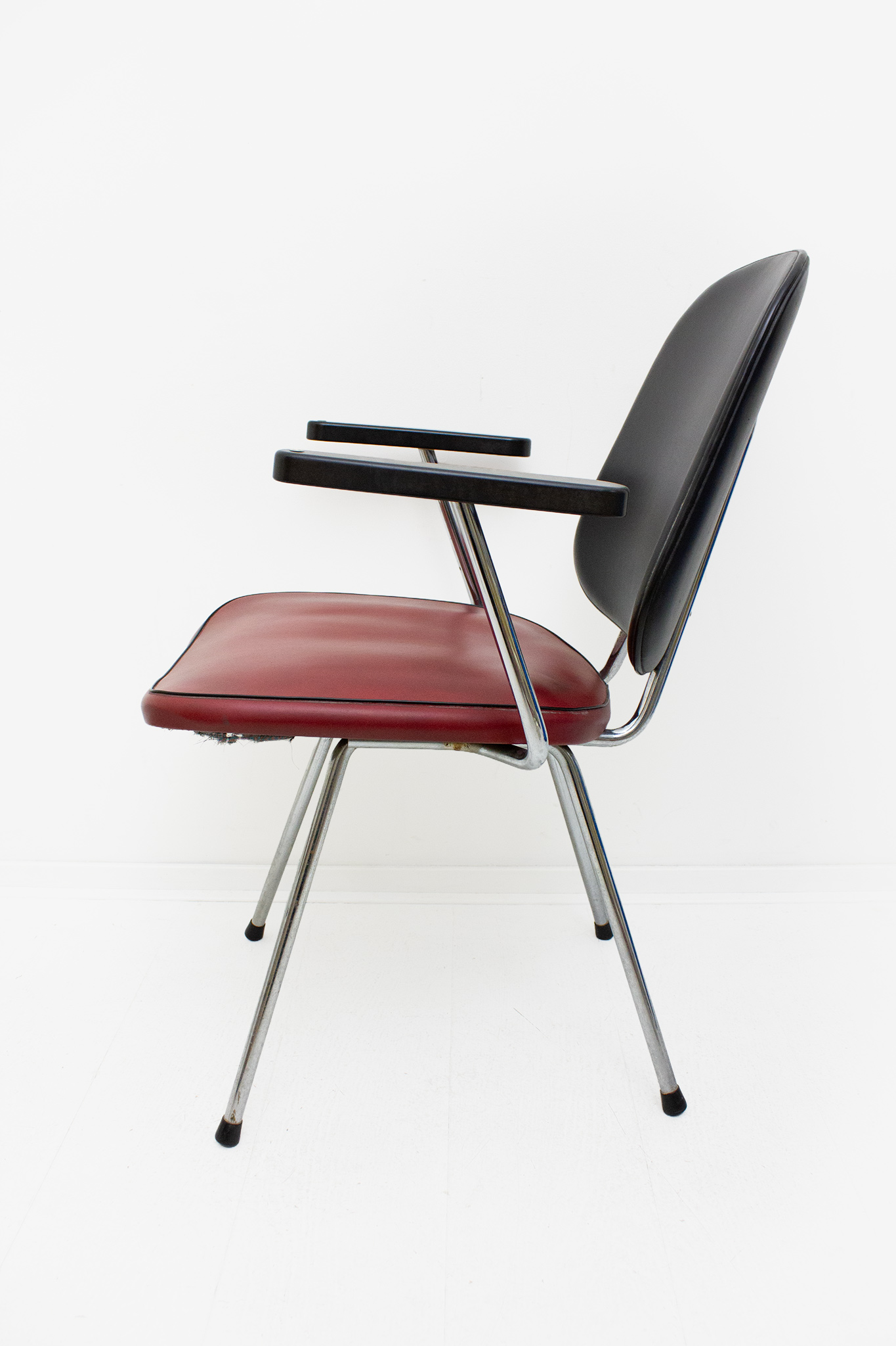 Deze vintage skai leren stoel is een heerlijke stoel om lekker op te relaxen, maar ook ideaal als bureaustoel/ werkstoel. De stoel heeft dankzij de kleurencombinatie van zwart en rood een heel elegante uitstraling.