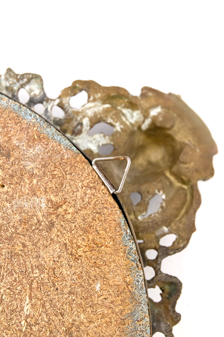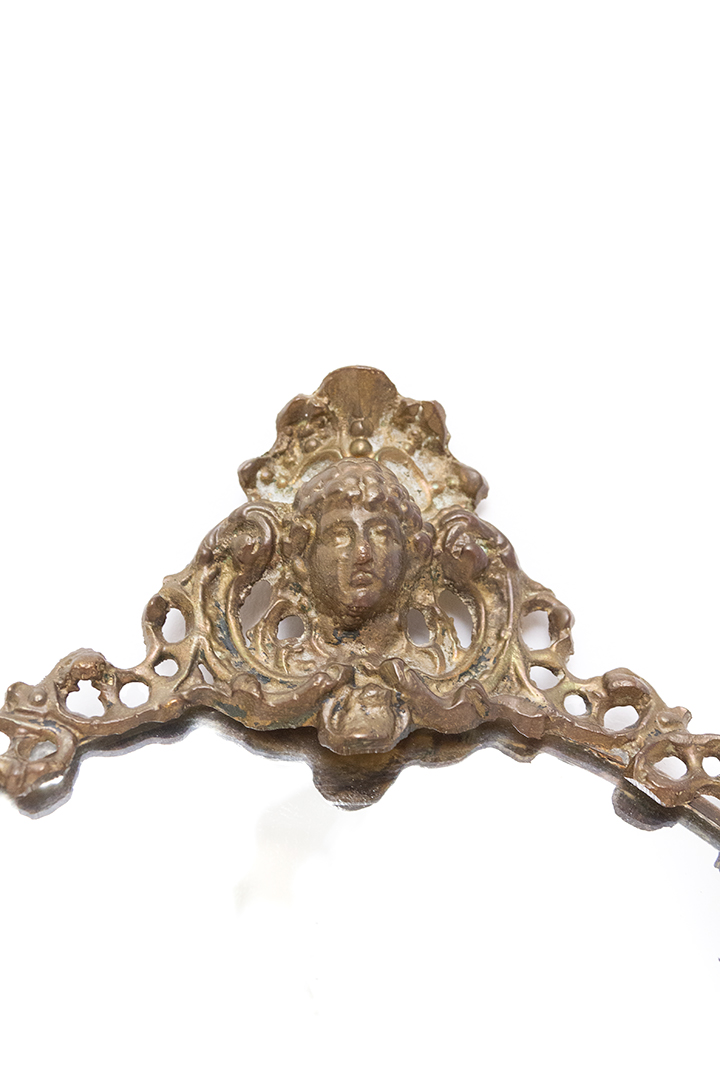 Vintage spiegel ovaal met decoratieve messing rand en hoofdje