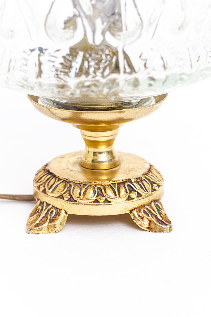 Vintage tafellamp met glazen kap en bewerkt messing voetje
