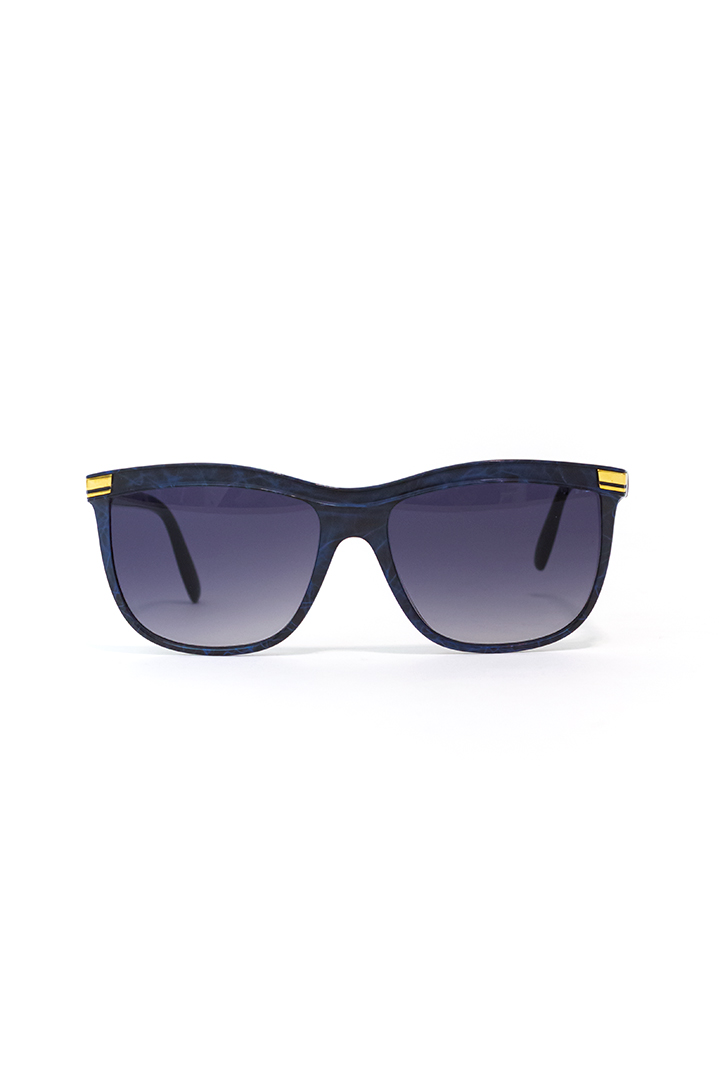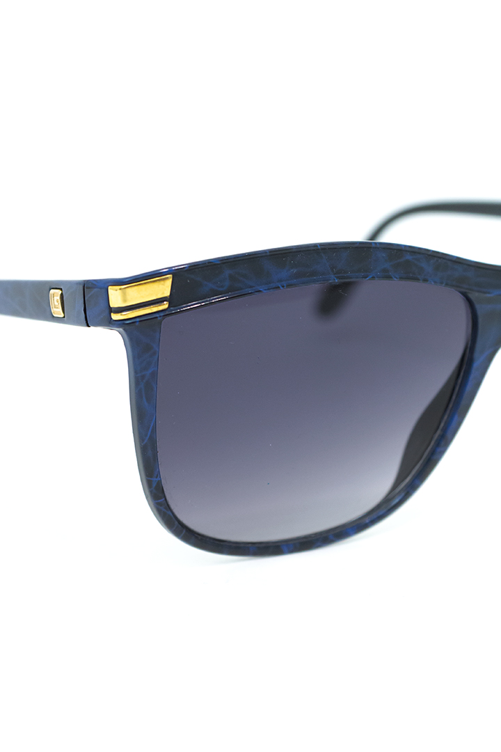 Tijdloos mooie vintage zonnebril van het Franse merk Guy Laroche. Het montuur van deze bril heeft een blauw/zwart gemêleerd patroon. De glazen hebben een kleurverloop en zijn gemiddeld donker. Op de pootjes is het goudkleurige logo van Guy Laroche zichtbaar als subtiel detail. Het frame van deze designerbril heeft iets weg van de klassieke cat-eye zonnebrillen. Stylish, en zo’n montuur staat veel mensen goed!