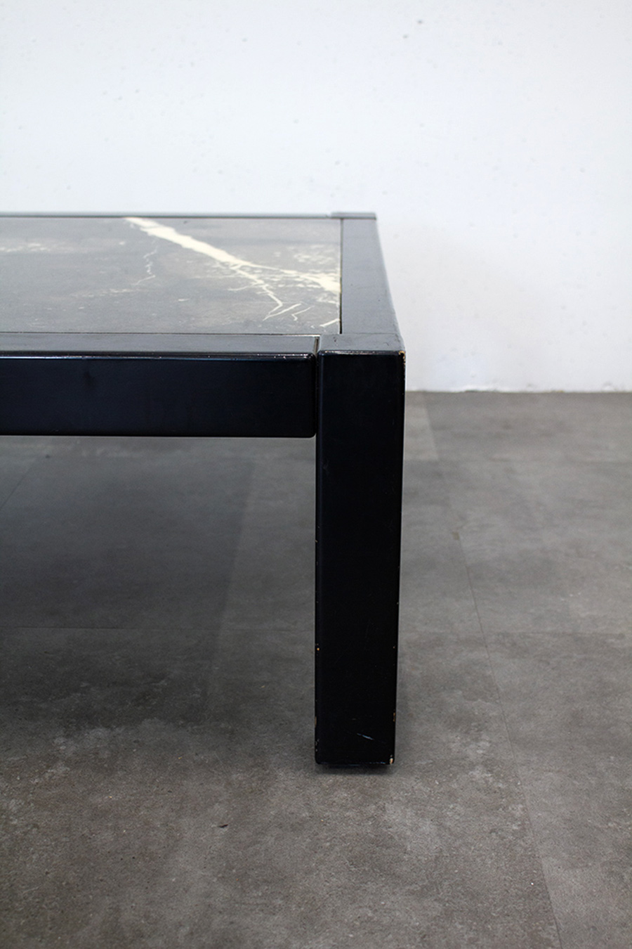Zwarte vintage salontafel marmeren blad