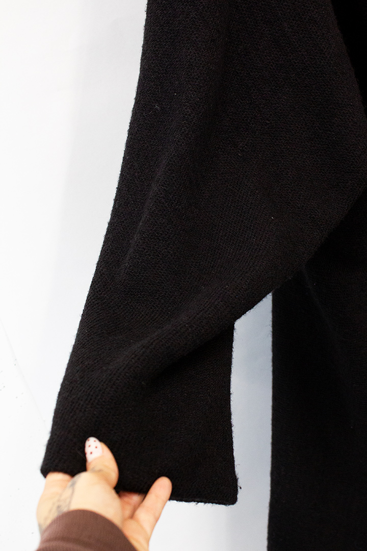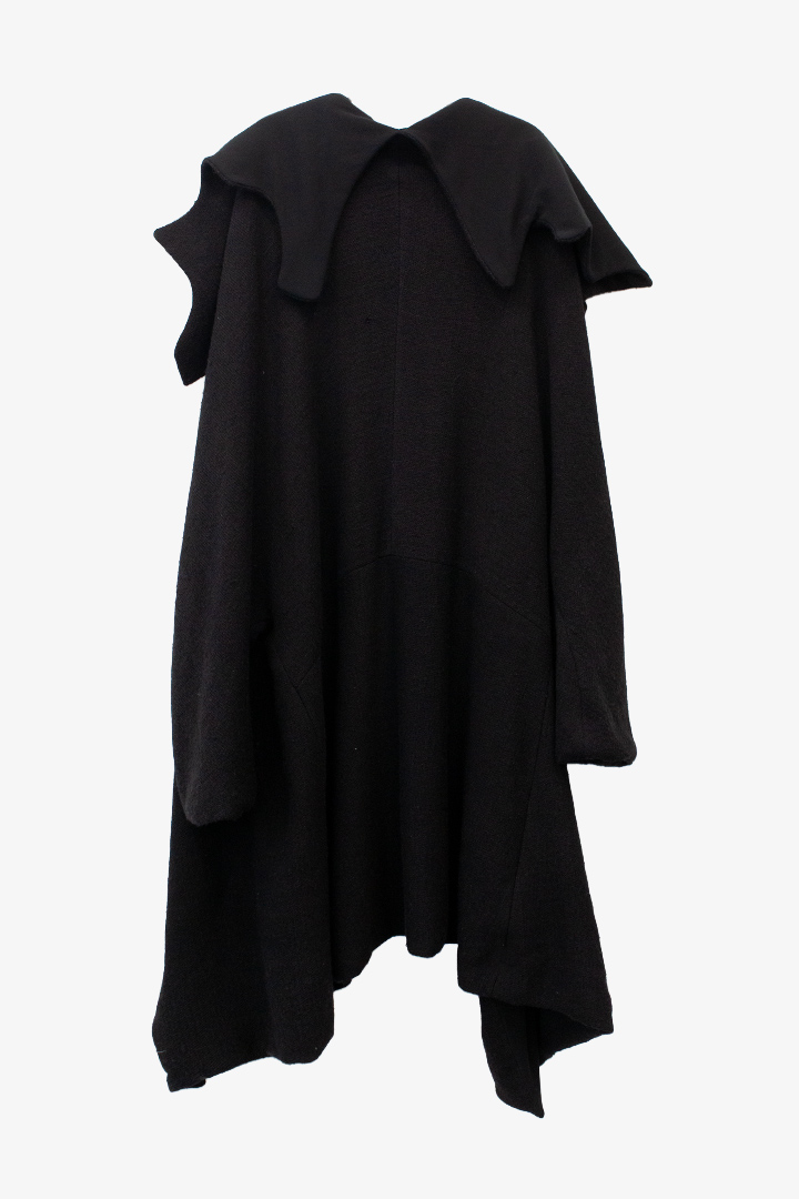 Zwarte wollen gebreide Yohji Yamamoto jas met vleermuis vleugels kraag